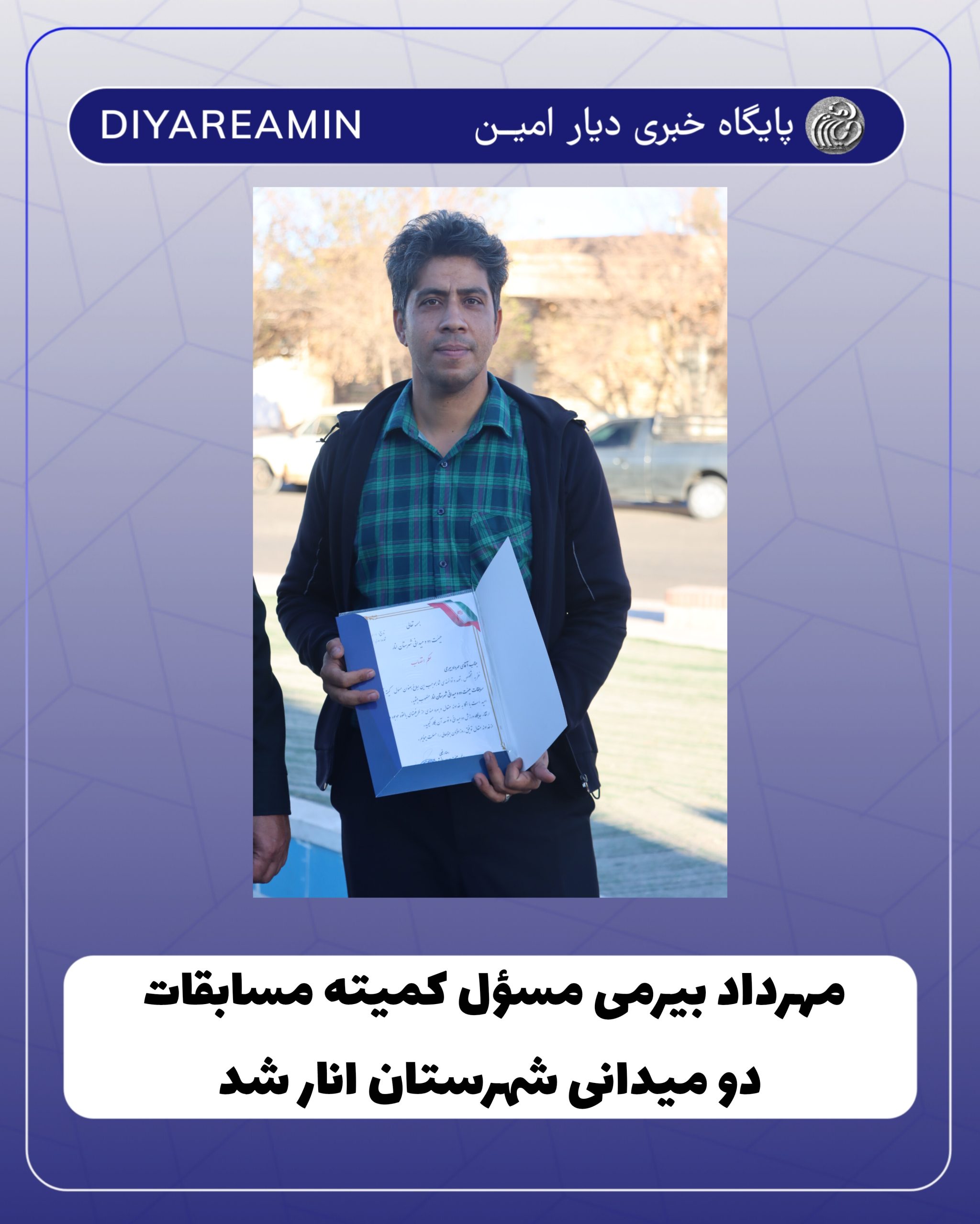 آقای مهرداد بیرمی با حکم ریئس هیئت دوومیدانی شهرستان انار، به سمت مسئول کمیته مسابقات این هیئت و همچنین به عنوان نماینده هیئت در امینشهر منصوب شد.این انتصاب، نشاندهنده اعتماد هیئت دوومیدانی شهرستان انار به ایشان است و نقش کلیدی ایشان را در پیشبرد ورزش دوومیدانی در منطقه نشان میدهد.